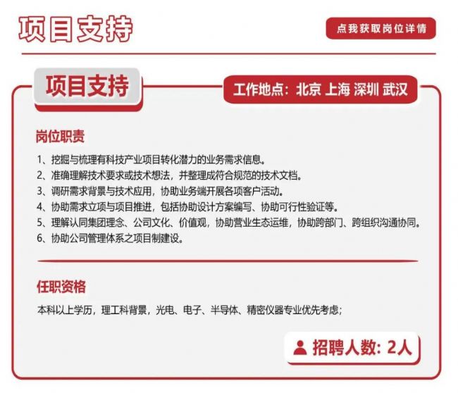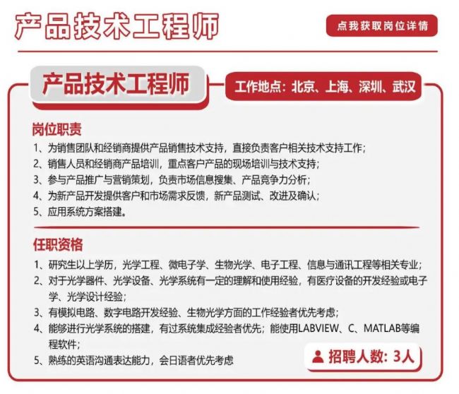 此次招聘的公司,濱松中國,全稱濱松光子學(xué)商貿(mào)(中國)有限公司,是濱松集團在中國的全資子公司,成立于2011年,坐標(biāo)北京朝陽區(qū)毗鄰國貿(mào),上海、深圳、武漢均有分公司,陜西、四川等分公司正在籌備中。