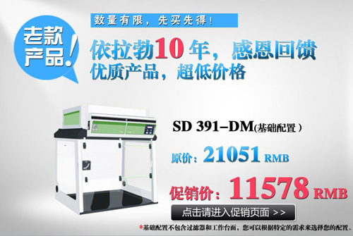 為了回饋廣大用戶一直以來對依拉勃公司的支持,現(xiàn)逢十周年來臨之際,特舉行舊款凈氣型通風(fēng)柜產(chǎn)品大促銷活動(dòng)。優(yōu)質(zhì)的質(zhì)量,超低的價(jià)格。