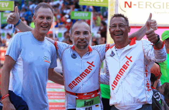 相較而言,Memmert的延后出發(fā)運動員就稍稍運氣了些,因為他們可以組團分段接力完成比賽,累計成績。跟去年一樣,許多Memmert員工抓住機會再次集體參賽。