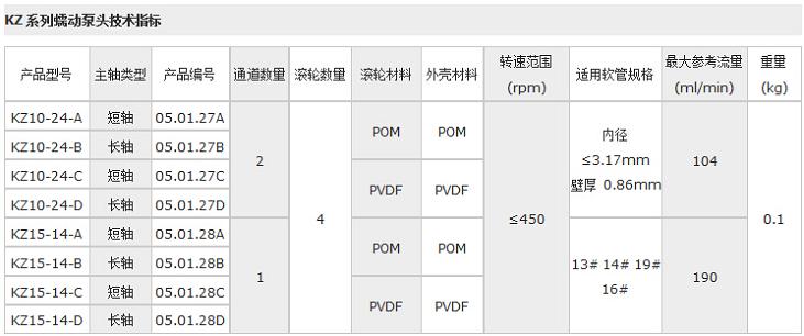 ● KZ10、KZ15系列蠕動泵泵頭主要應用于環(huán)保檢測、醫(yī)療體外診斷等儀器設備配套。