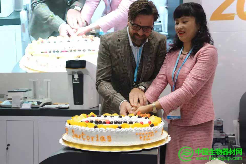 隨后,賽多利斯大中華區(qū)實驗室產(chǎn)品及服務(wù)部銷售總監(jiān)盧莉瓊女士和賽多利斯總部純水產(chǎn)品經(jīng)理Frank Gatzemeyer先生共同切蛋糕慶祝賽多利斯中國的二十歲生日。