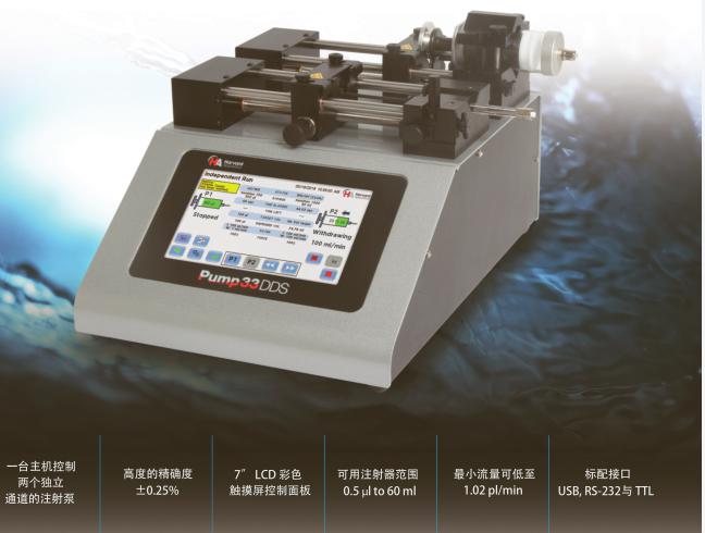 Harvard pump33 DDS(雙驅(qū)動系統(tǒng))是一款具有突破性的注射泵產(chǎn)品,PUMP33 DDS具有兩個可以獨立控制的注射通道,同時所有參數(shù)的設(shè)置與現(xiàn)實由一個觸摸屏來完成。
