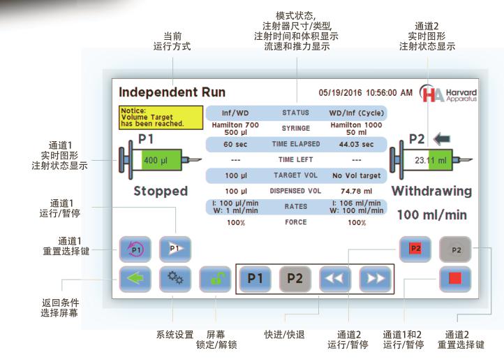 • PUMP33 DDS直觀的圖形用戶界面通過一個7 LCD彩色觸摸屏控制,用戶可以快速并簡便地設(shè)置注射程序。