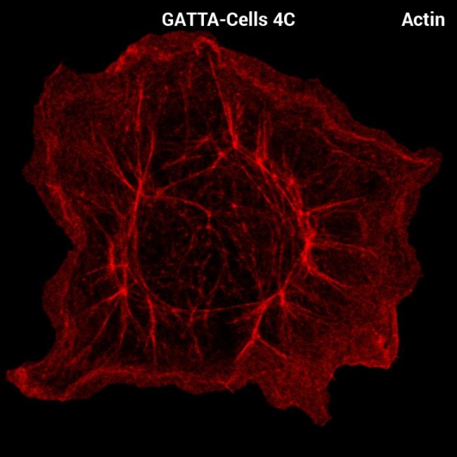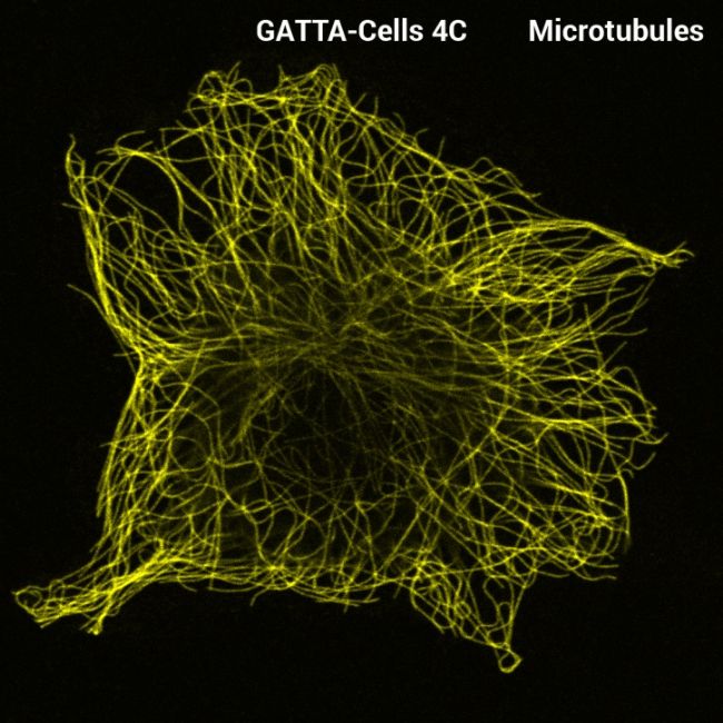 即用型KOSTER & GATTA標準細胞片包含已經(jīng)固定和染色的Cos-7細胞株用于熒光成像(推薦用于寬場熒光顯微鏡,激光共聚焦,超分辨SIM成像,STED成像,dSTORM成像。