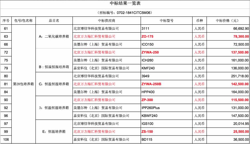 同時,國家質(zhì)量監(jiān)督檢驗檢疫總局2018年專用儀器設(shè)備采購項目 在培養(yǎng)箱采購項目中, ZENITHAR 委托北京萬方海匯科貿(mào)有限公司入圍第28包中全部五個系列。