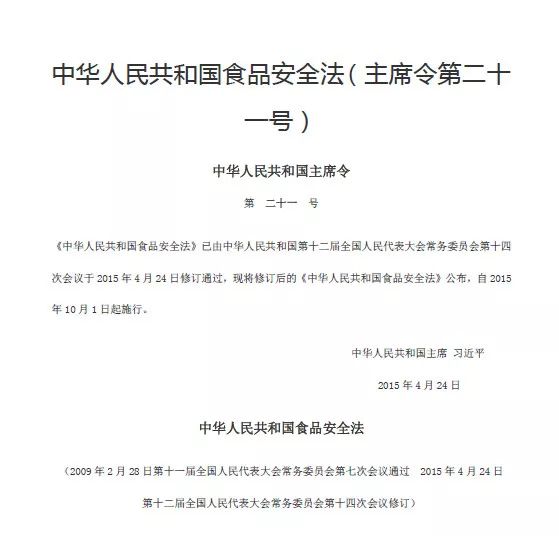 2015年4月中國出臺了一部世上最嚴格的食品安全法,此法令: