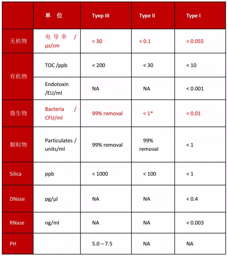 ❖除非實驗方法有特殊要求,培養(yǎng)基、試劑及稀釋劑配置用水應(yīng)該經(jīng)過蒸餾、去離子或反滲透處理并無菌、無干擾劑和抑制劑,配置用水應(yīng)該滿足下列參數(shù)(性能驗證):