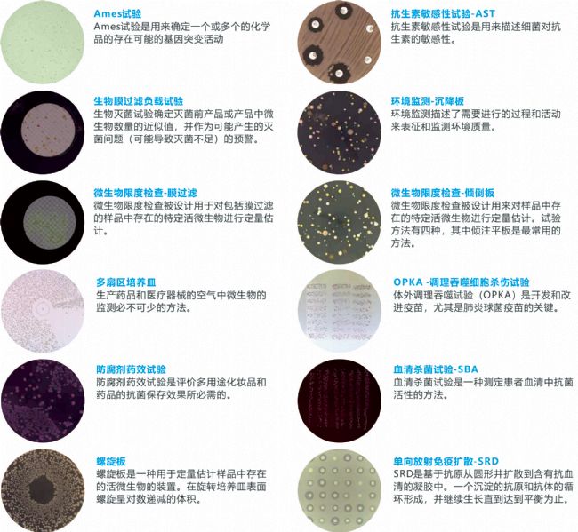 ColonyCounter 是新一代的菌落計數(shù)儀,具有菌落計數(shù),抑菌圈測量(抑菌和AST),過濾膜,PetrifilmTM板和一系列其他的應(yīng)用包括:螺旋板,OPKA、SBA、多孔、多部分統(tǒng)計,SRD和Ames。最大培養(yǎng)皿檢測直徑可達(dá)150mm,計數(shù)菌落小至43微米(0.043mm),抑菌圈檢測精確到0.5mm,并且達(dá)到0.1mm的理論檢測極限。