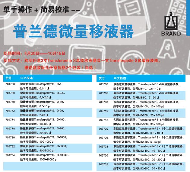 > 促銷 > BRAND移液器,分液器,滴定器促銷,買就送吸頭、燒杯!