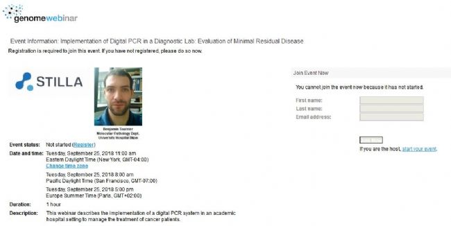 9月25日北京時(shí)間23:00(巴黎時(shí)間:17:00),法國國立第戎大學(xué)醫(yī)院分子病理學(xué)院的Benjamin Tournier博士,將于Genomeweb平臺(tái)在線分享“三色Crystal Digital PCR系統(tǒng)在靶向治療的黑素瘤患者和肺癌患者管理中的應(yīng)用”,法國第戎大學(xué)醫(yī)院分子病理學(xué)院從2016年3月起開展液態(tài)活檢研究項(xiàng)目,針對(duì)轉(zhuǎn)移的黑素瘤患者的BRAF突變和肺癌患者的EGFR突變進(jìn)行液態(tài)活檢研究,該項(xiàng)目認(rèn)為數(shù)字PCR在對(duì)免疫治療患者的監(jiān)控是非常合適的技術(shù)。