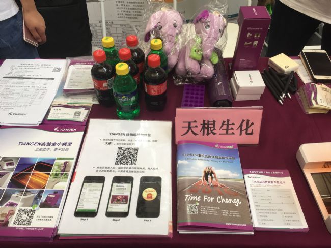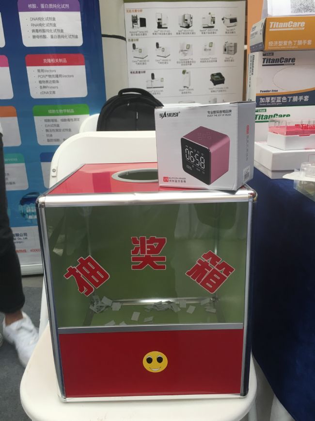 為了吸引同學(xué)們的目光,許多展商也準(zhǔn)備了豐富的小禮品,免費贈送U盤、雨傘、筆記本、便利貼等這些常見的套路已經(jīng)很少,微信抽獎成為諸多展商與同學(xué)們互動的好幫手,禮品設(shè)計別出心裁。泰坦科技設(shè)置的大獎為數(shù)碼音響和運動背包;凱奧科技的禮品大氣實用,帶有電子表的筆筒和充電小臺燈比較受歡迎;碧云天的小姐姐們也很用心,精心制作了熱門電視劇《延禧攻略》鼠標(biāo)墊,深受女同胞們喜愛;奧豪斯的儀器拼圖和情侶筷也讓許多參會者駐足參與活動。沒有來的小伙伴是不是很后悔,讓我們一起期待下一屆吧!