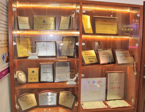 展示廳內(nèi)陳列的智城部分所獲榮譽獎項