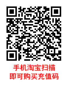 訪問淘寶店網(wǎng)址:點擊“淘寶店”或手機淘寶掃描下方二維碼。購買后,充值碼將發(fā)送到預留手機號碼或郵箱中,敬請留意。