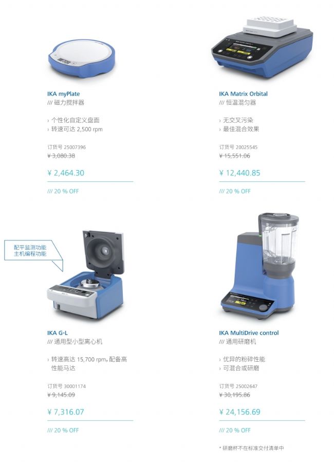 想要享受這些優(yōu)惠,請(qǐng)?jiān)L問我們的網(wǎng)站 www.ika.com。如果您對(duì)本期中介紹的產(chǎn)品有任何疑問,請(qǐng)通過電子郵件 info@ika.cn 與我們聯(lián)系。