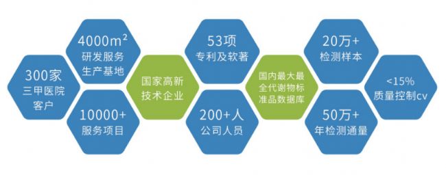 公司目前已建立了完善的代謝組學(xué)平臺,包括非靶標(biāo)代謝組、高通量靶標(biāo)代謝組、常規(guī)靶標(biāo)代謝組、脂質(zhì)組學(xué)、代謝流檢測,同時建立了蛋白質(zhì)組學(xué)平臺,提供靶向及非靶向蛋白組學(xué)、修飾蛋白質(zhì)組學(xué)、多肽組學(xué)等業(yè)務(wù),F(xiàn)服務(wù)范圍遍及全國,服務(wù)項目超10000個,檢測樣品超20萬例,服務(wù)的單位包括高校、研究所、醫(yī)院、企業(yè)等超過1000家,其中三甲醫(yī)院近300家。