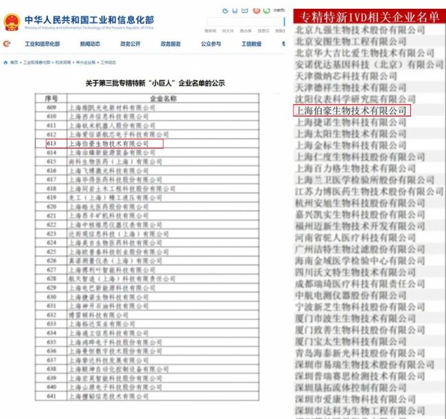 8 月 21 日,國家工信部公布第三批 2930 家專精特新“小巨人”企業(yè)。在第三批專精特新“小巨人”企業(yè)中,超過 30 家 IVD 相關(guān)企業(yè)上榜。 伯豪生物上榜國家工信部第三批專精特新“小巨人”企業(yè)名單。