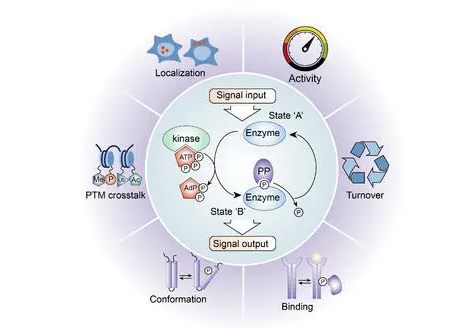 蛋白質(zhì)是由轉(zhuǎn)錄本翻譯合成的,剛合成出來的蛋白質(zhì)氨基酸序列是沒有功能的,它必須到達(dá)其指定的位置如胞內(nèi)、胞外,和不同的亞細(xì)胞器等,形成特定的三位空間結(jié)構(gòu),并與其周圍的相關(guān)分子相互作用,形成一個(gè)復(fù)合物(complex)才能發(fā)揮其功能作用。從核糖體剛合成出來到其指定的位置過程中有很多的蛋白質(zhì)翻譯后修飾(PTMs; 據(jù)估計(jì)人體有400-600種PTMs)。蛋白翻譯后修飾具有重要的生物學(xué)意義,比如調(diào)節(jié)DNA-蛋白、蛋白-蛋白相互作用、調(diào)節(jié)酶活性、細(xì)胞增殖、細(xì)胞信號(hào)轉(zhuǎn)導(dǎo)等過程,對(duì)調(diào)節(jié)細(xì)胞的活力具有重要的作用。
