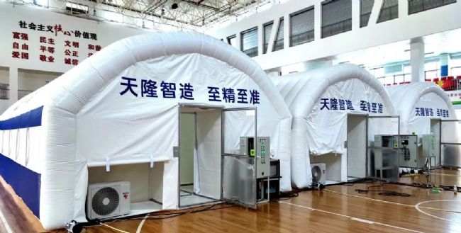 此次廈門疫情防控,天隆科技第一時間派遣50余名技術人員攜天隆產(chǎn)品趕赴當?shù),并在疫情最為嚴重的同安區(qū)迅速投入氣膜方艙實驗室的建設,助力當?shù)乜焖偬嵘怂釞z測能力。