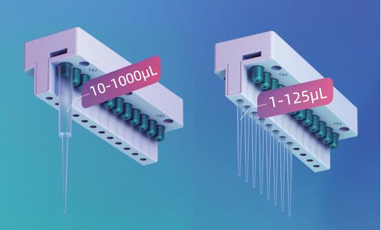 包含大體積(10-1000 μL)和小體積(1-125 μL)兩種移液核心,1/ 8/ 12通道自由切換,滿足更多實驗需求