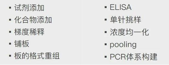 包括標準的96/384孔板、PCR板和深孔板、以及離心管 (1.5/2.0/5.0 mL)、PCR 8聯(lián)管以及儲液池等