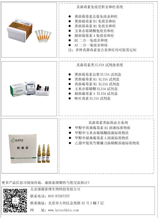 試劑產品主要包括:真菌毒素檢測免疫親和柱、真菌毒素檢測ELISA試劑盒、真菌毒素類標準品和質控樣品等。