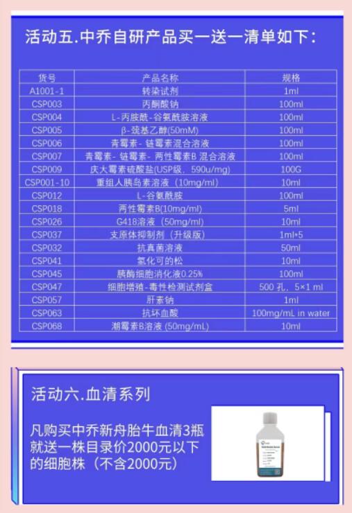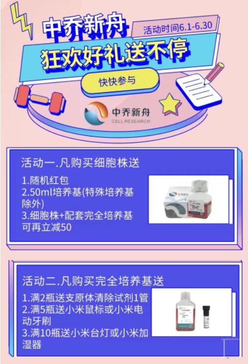 購中喬新舟細胞株血清培養(yǎng)基及緩沖液等有好禮相送
