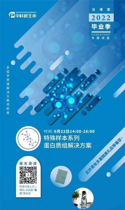 中科新生命將于6月22日下午14:00舉辦特殊樣本系列蛋白質(zhì)組解決方案講座。我們將邀請蛋白業(yè)務(wù)線產(chǎn)品經(jīng)理及售前技術(shù)專家為大家分享最新前沿技術(shù)及應(yīng)用解決方案。此外,我們還為您準(zhǔn)備了運(yùn)動水杯、卡杰筆記本等多重精美禮品,相信您定能在此次講座中滿載而歸!