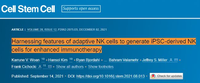 [4]Woan K V , Kim H , Bjordahl R , et al. Harnessing features of adaptive NK cells to generate iPSC-derived NK cells for enhanced immunotherapy. 2021.