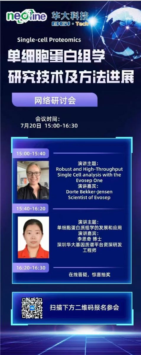 目前單細(xì)胞蛋白組學(xué)研究中仍存在諸如通量、靈敏度等問(wèn)題亟待解決,杭州紐藍(lán)科技特聯(lián)合華大基因于7月20日(15:00開始)共同舉辦單細(xì)胞蛋白組學(xué)研究技術(shù)及方法進(jìn)展網(wǎng)絡(luò)研討會(huì),聚焦單細(xì)胞蛋白質(zhì)組學(xué)領(lǐng)域的實(shí)時(shí)進(jìn)展及新技術(shù)和新方法做精彩分享,助力生命科學(xué)領(lǐng)域發(fā)展及臨床科研應(yīng)用。