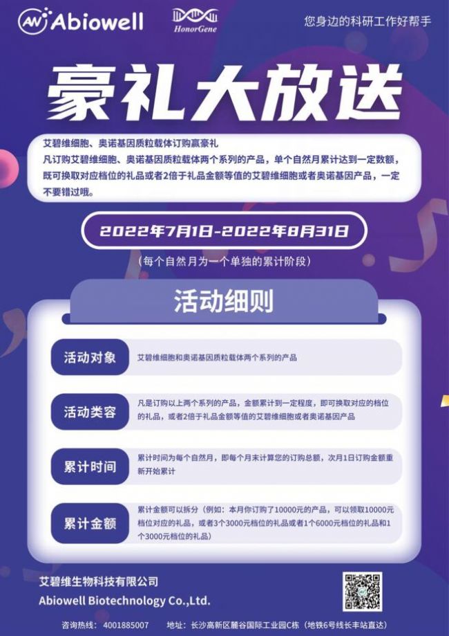 > 促銷 > 艾碧維細胞、奧諾基因質(zhì)粒載體訂購贏豪禮活動來襲