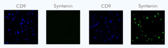 ExoView®外泌體全面表征試劑盒可對細(xì)胞培養(yǎng)上清、血漿、血清、尿液、腦脊液、唾液等生物樣本中的外泌體直接進(jìn)行分析,僅需50 µl稀釋樣本。試劑盒的捕獲抗體為anti-CD81, anti-CD9, anti-CD63, 同型 IgG 對照,也可自定義。此外,試劑盒的熒光抗體分為CD9(Blue)、CD81(Green)、 CD63(Red)。一次實(shí)驗(yàn)即可獲得以下數(shù)據(jù):