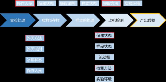 質(zhì)控更多是圍繞實驗來開展的,因此我們需要圍繞樣本的收集、儲存、提取等環(huán)節(jié),從“人機(jī)料法環(huán)”五個方面來考慮對實驗質(zhì)量產(chǎn)生影響的因素。