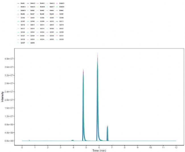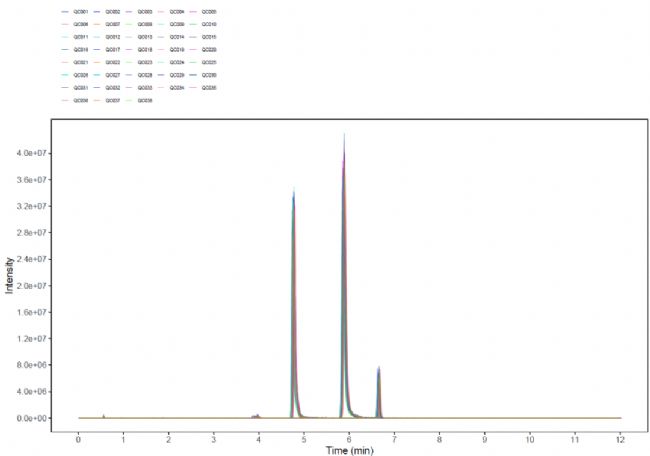 QC樣本:Quality Control樣本,是將所有實驗樣本混合而成的一例額外樣本。理論上來說該樣本含有所有樣本中的所有種類物質(zhì),因此該樣本可以作為全部樣本的“代表”,可以在不影響實驗樣本檢測的情況下,通過對QC樣本的檢測,來判斷整個實驗檢測是否穩(wěn)定。