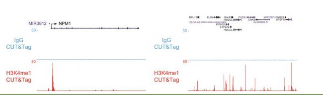 H3K4me1抗體的CUT&Tag數(shù)據(jù)顯示,與IgG對(duì)照組相比,H3K4me1 CUT&Tag檢測(cè)到了H3K4me1的信號(hào)峰,且信噪比較高。