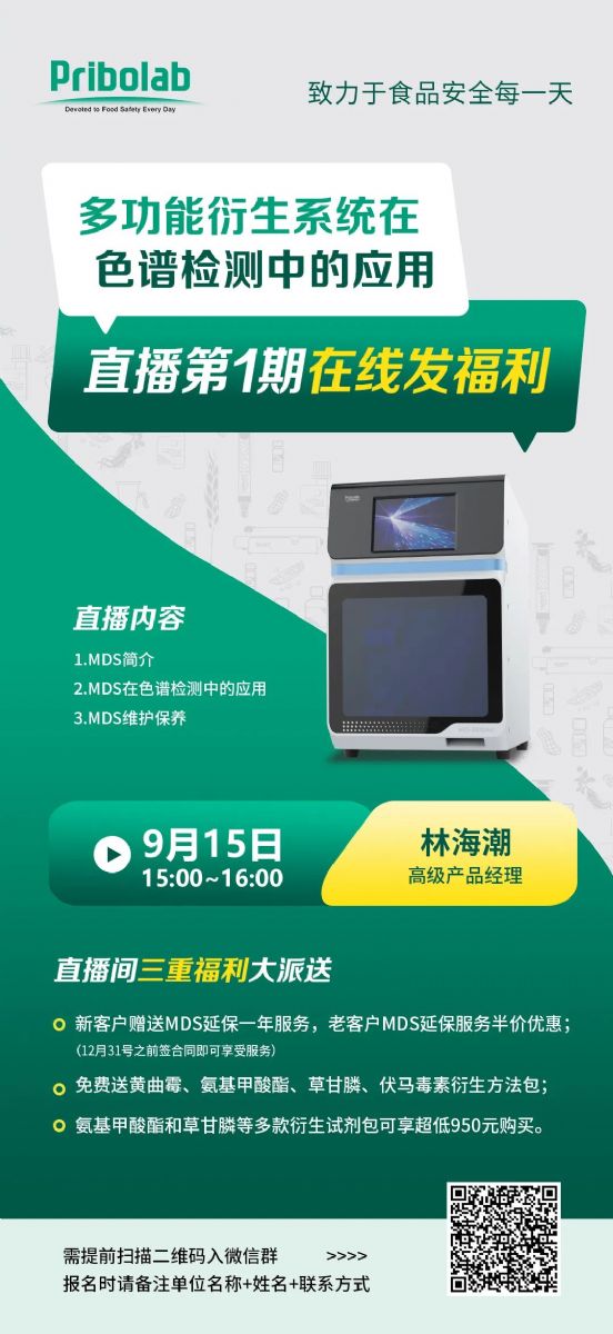2022年9月15日下午三點,我們將通過云直播的方式舉辦第一期Pribolab直播小課堂。除了講解MDS簡介、在色譜檢測中的應(yīng)用、維護保養(yǎng)三個主題之外,屆時也會給大家介紹我們新款升級的MDS3000Plus有哪些新的變化。