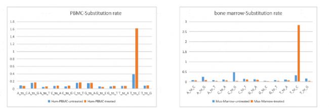 圖1A 小鼠骨髓和人PBMC樣本T to C突變頻率