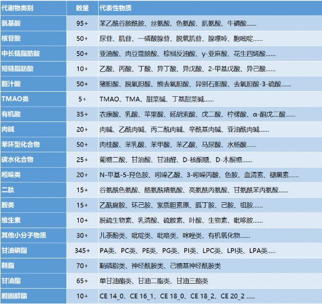 ● 靶向定量檢測生物樣本中超1000種功能性代謝物,覆蓋二十多種物質(zhì)類群,高通量、定量準(zhǔn)和廣覆蓋完美兼顧。