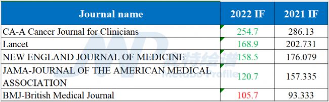 每年備受矚目的莫過于榜首“神刊”CA-A Cancer Journal for Clinicians,除了知道它“神”,還得知道為何“神”。有些期刊靠綜述拉高引用次數(shù),CA則是靠統(tǒng)計(jì)數(shù)據(jù)來拉高。每年2篇論文打天下,一篇是Global cancer statistics,另一篇是Cancer statistics。大量與癌癥相關(guān)的研究都會(huì)從CA里引用最新的數(shù)據(jù),所以這引用率低不了。四大醫(yī)學(xué)期刊Lancet、NEJM、JAMA和BMJ也是一直穩(wěn)居TOP榜,今年影響因子首次全部超過100。
