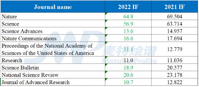 其次,中科院1區(qū)的幾大綜合期刊都有所降低。