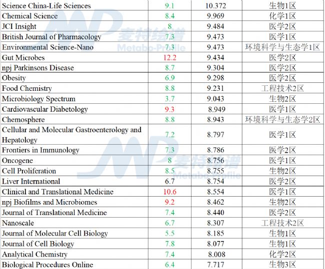 老牌代謝頂刊Cell Metabolism小幅降低,而新晉代謝頂刊 Nature Metabolism等小幅升高。