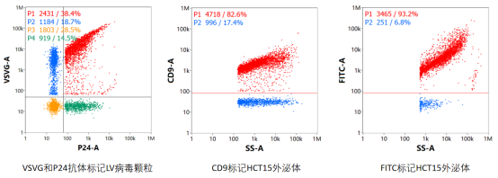 圖2. 不同樣品 使用NanoPC分離熒光抗體/染料后的納米流式表征結(jié)果