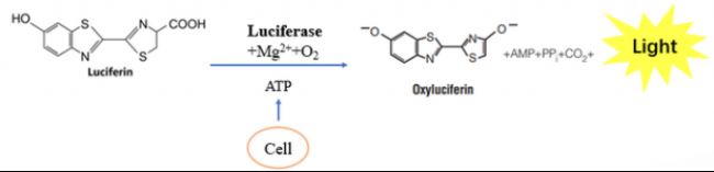 試劑盒中螢光素(D-Luciferin)與穩(wěn)定突變型螢光素酶在細(xì)胞裂解后,與細(xì)胞中ATP進(jìn)行反應(yīng)?梢栽谝欢ǖ募(xì)胞數(shù)量?jī)?nèi)對(duì)活細(xì)胞進(jìn)行定量。
