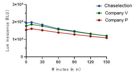 3. 發(fā)光信號(hào)持久:半衰期長(zhǎng)達(dá)3-5小時(shí),更好滿足高通量篩選需求。