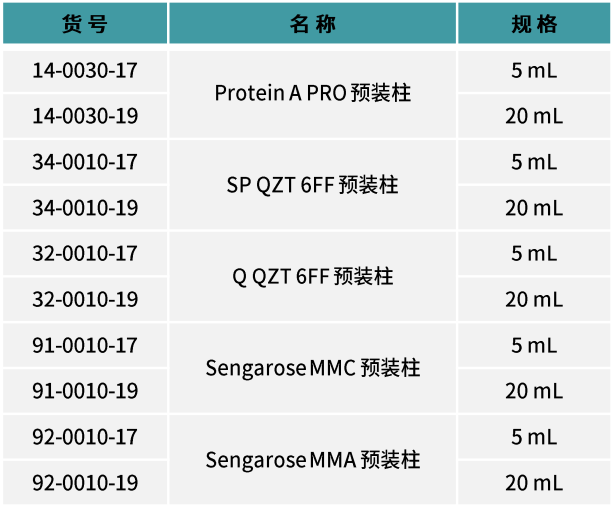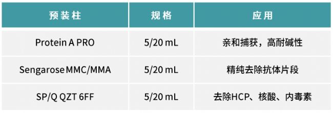抗體主要包括單克隆抗體(單抗)、雙特異性抗體(雙抗)和其他功能性抗體(Fc融合蛋白、抗體藥物偶聯(lián)物(ADC)等),在疾病診斷、腫瘤和免疫性疾病治療等領域具有廣闊的應用前景。為更好地滿足抗體快速、高效、低成本純化需求,中科森輝推出了高載量、高穩(wěn)定性的以蛋白A親和介質為主的層析預裝柱組合套裝,為用戶提供便捷的一體化解決方案。