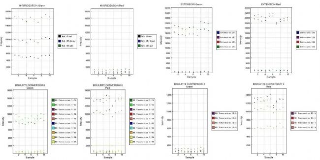 嚴(yán)格按照Illumina Infinium® MethylationEPICv2 BeadChip(簡(jiǎn)稱935K)操作手冊(cè)完成DNA抽提、轉(zhuǎn)化、擴(kuò)增、雜交洗脫等,質(zhì)控結(jié)果說(shuō)明雜交實(shí)驗(yàn)過(guò)程穩(wěn)定、轉(zhuǎn)化率高、熒光信號(hào)和結(jié)合狀況良好,綜合說(shuō)明實(shí)驗(yàn)操作穩(wěn)定,可以進(jìn)一步做甲基化的數(shù)據(jù)分析。