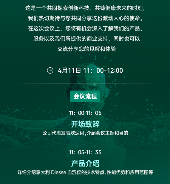 我們誠摯地邀請您參加于4月11日上午11:00舉辦的一場重要會(huì)議,旨在向您全面介紹點(diǎn)成生物最新推出的新品——全自動(dòng)血沉測定儀。