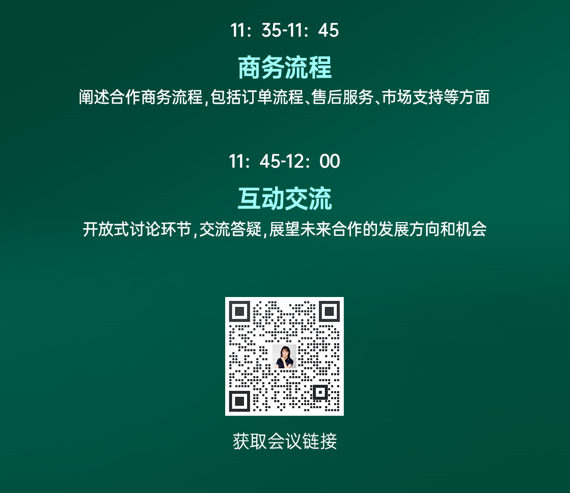 【互動(dòng)交流】在開放式討論環(huán)節(jié),您可以提出任何疑問,我們將竭誠為您解答。同時(shí)我們期待與您共同展望未來合作的發(fā)展方向和機(jī)會(huì),共同規(guī)劃合作藍(lán)圖。