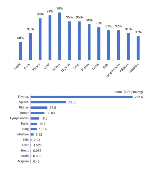 使用DSC-200處理多種小鼠組織獲得的單細(xì)胞懸液,表現(xiàn)出高細(xì)胞活率、高細(xì)胞得率。