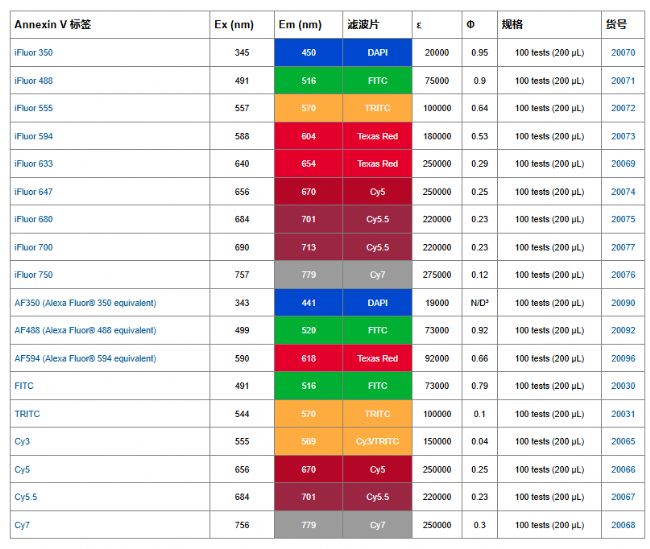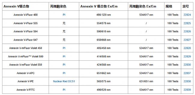 用于細(xì)胞凋亡檢測(cè)的熒光Annexin V產(chǎn)品一覽: