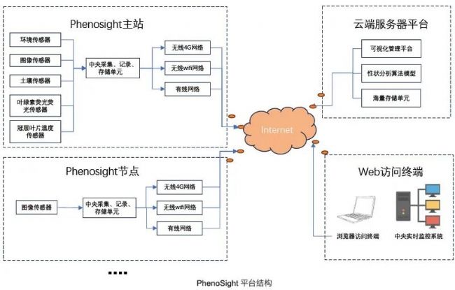 物聯(lián)網(wǎng)分布式表型監(jiān)測與分析系統(tǒng)PhenoSight是一個物聯(lián)網(wǎng)(IoT)支持的表型測量平臺,設(shè)計簡單易用,可廣泛應(yīng)用于多種環(huán)境。并配套一個云端數(shù)據(jù)管理系統(tǒng)、高通量性狀分析算法和基于機器學(xué)習(xí)的建模,以管理和處理平臺生成的數(shù)據(jù),從而探究基因型、表型和環(huán)境之間的動態(tài)關(guān)系。